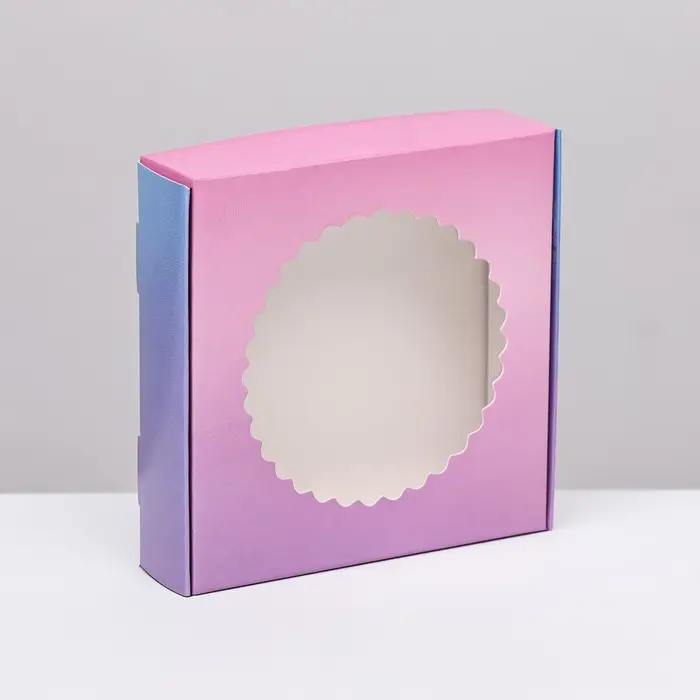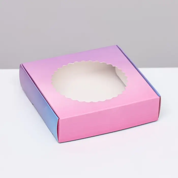 Коробка сборная с окном, "Розовая - голубая", 11.5×11.5×3 см
