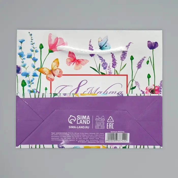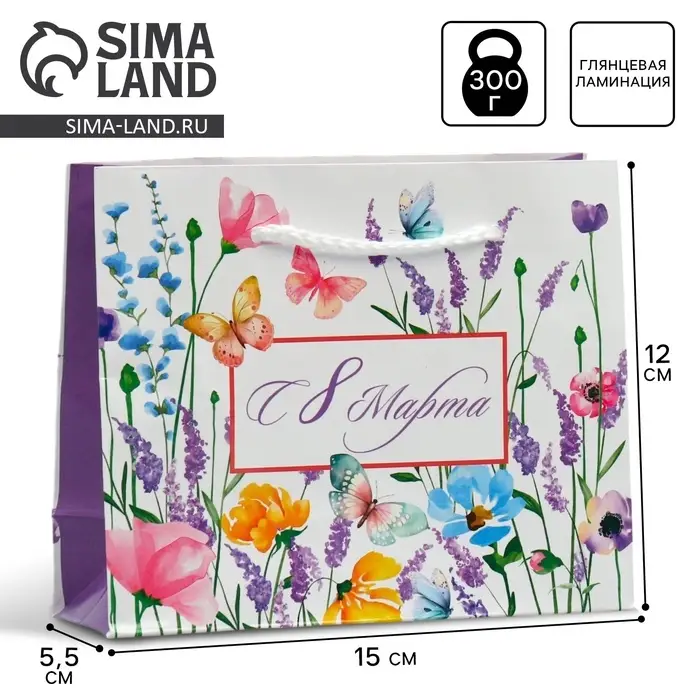 Пакет подарочный ламинированный, упаковка, «С 8 марта», S 15 х 12 х 5.5 см