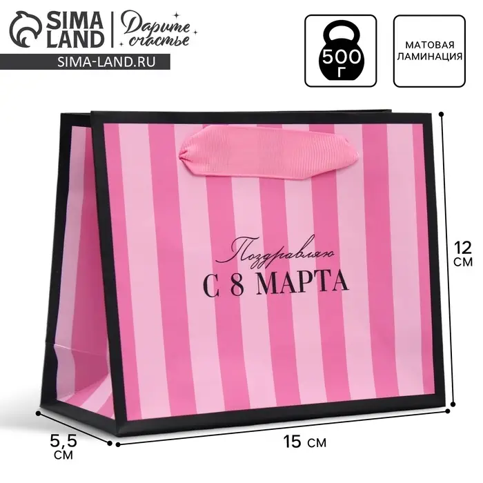 Пакет подарочный ламинированный, упаковка, «С 8 марта», S 12 х 15 х 5.5 см