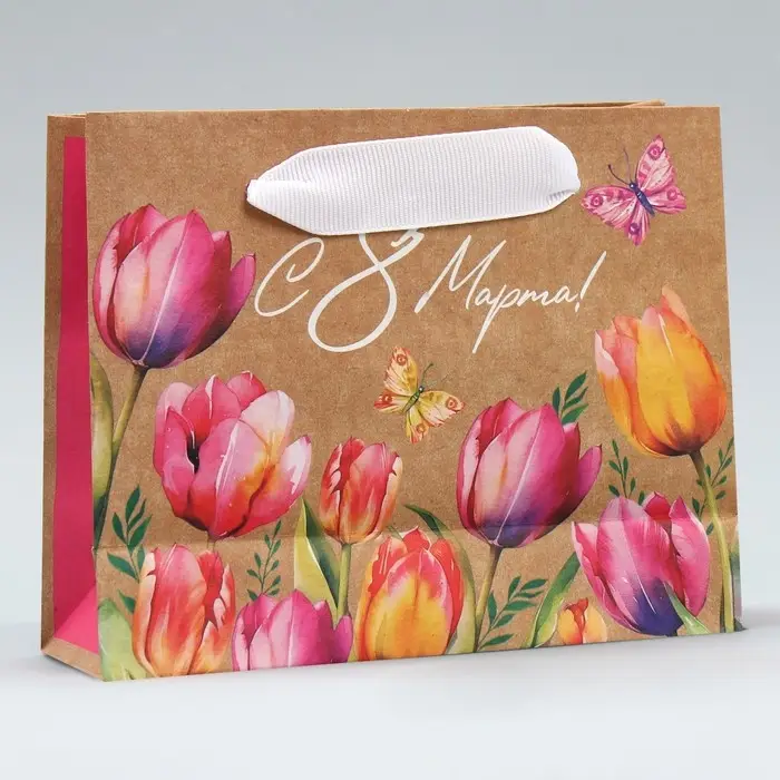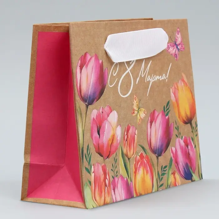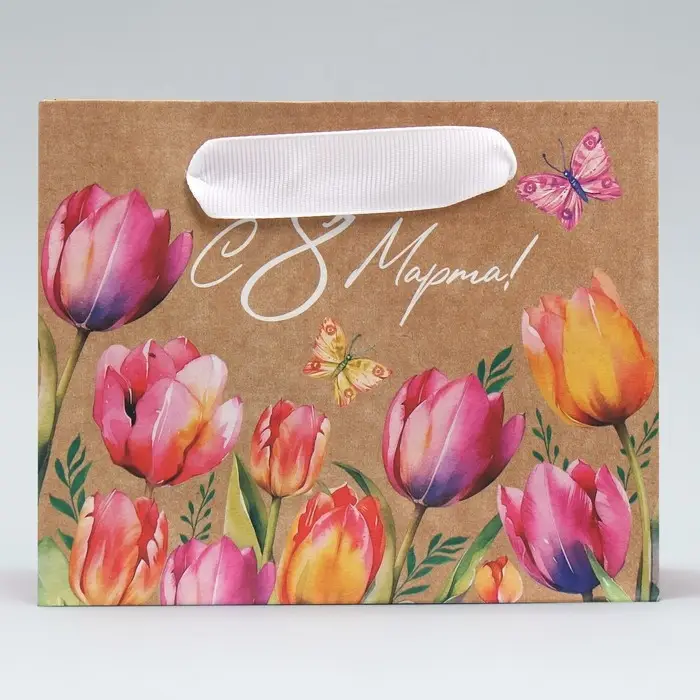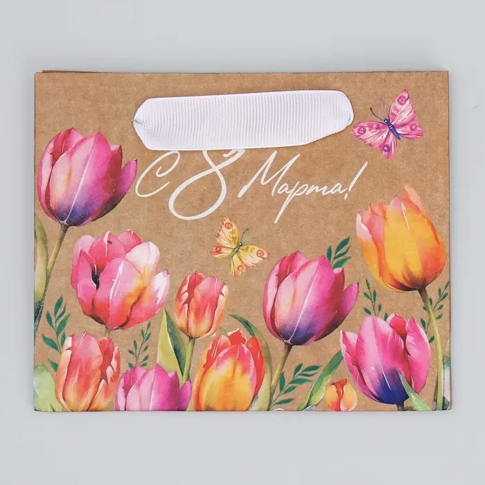 Пакет подарочный крафтовый, упаковка, «8 марта», S 12 х 15 х 5.5 см