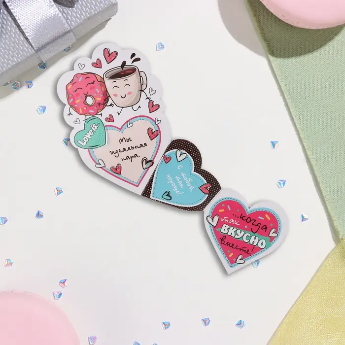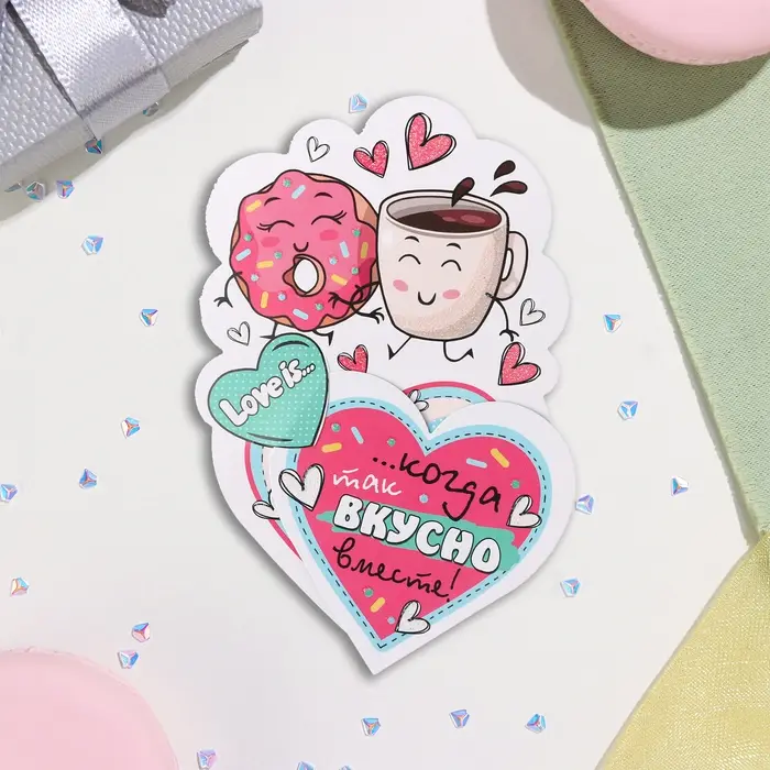Мини-открытка Love is, глиттер, 10×13.5 см
