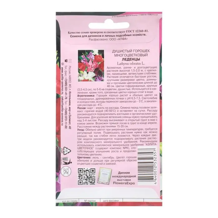 Семена цветов однолетние Душистый горошек 10 шт