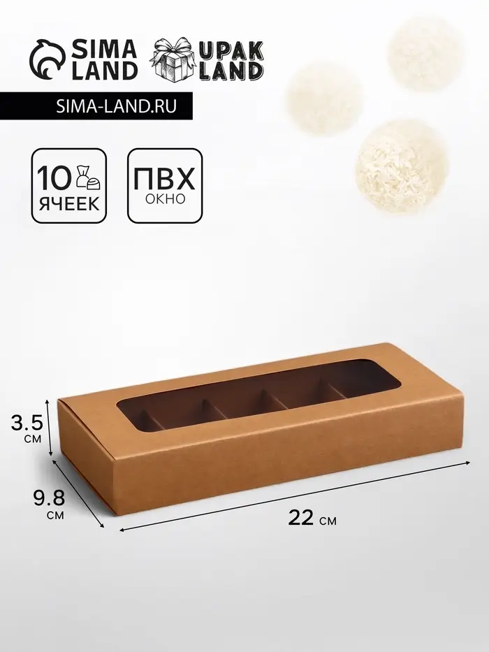 Коробка для 10 конфет, крафт, 9.8×22×3.5 см