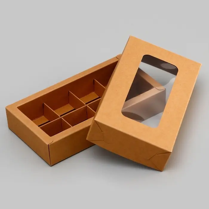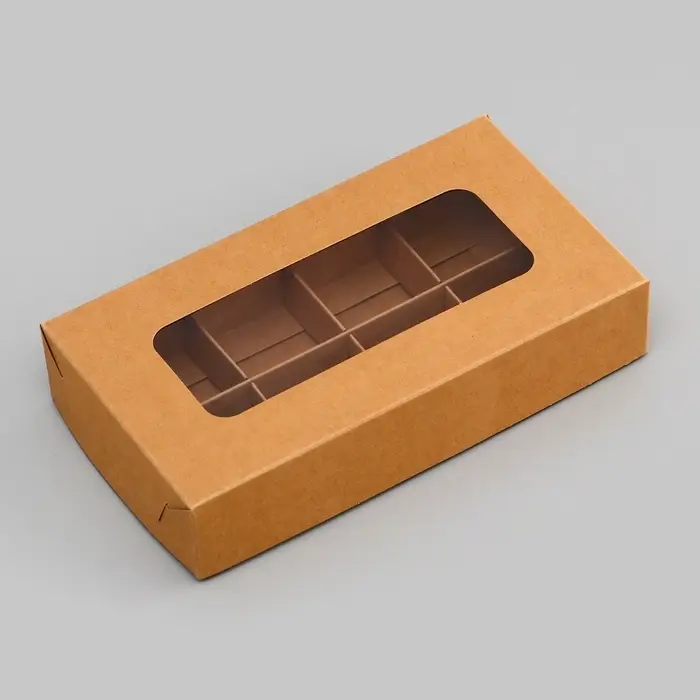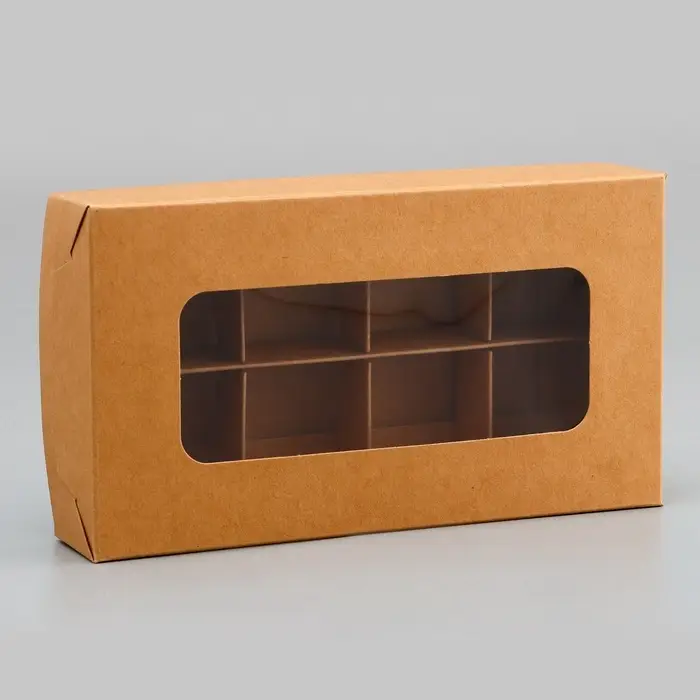 Коробка для 8 конфет, крафт, 9.8×17.7×3.5 см