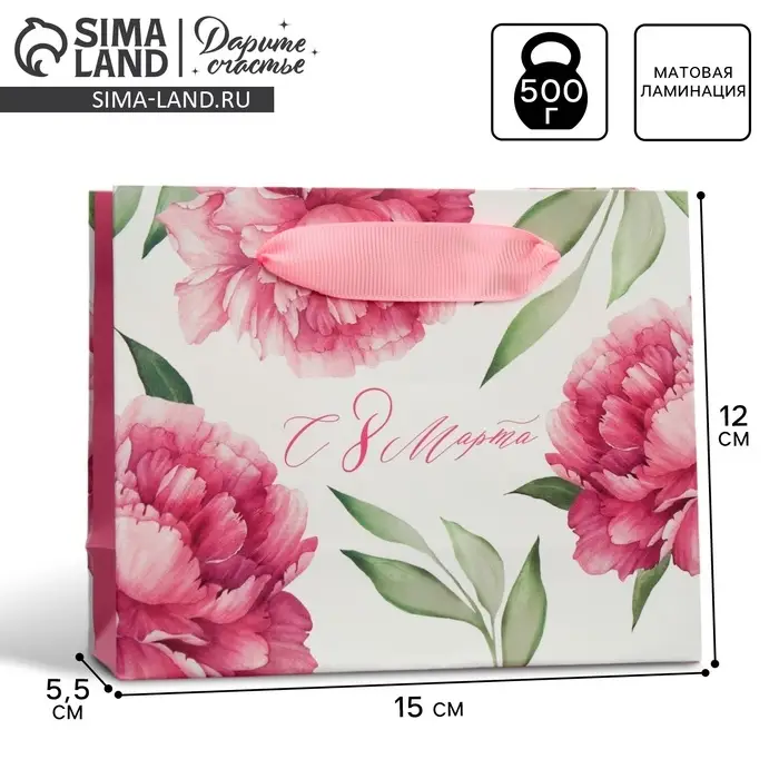 Пакет подарочный ламинированный, упаковка, «8 марта», S 12 х 15 х 5.5 см