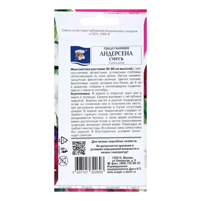 Семена цветов Традесканция Андерсена, Смесь, 0.02 г