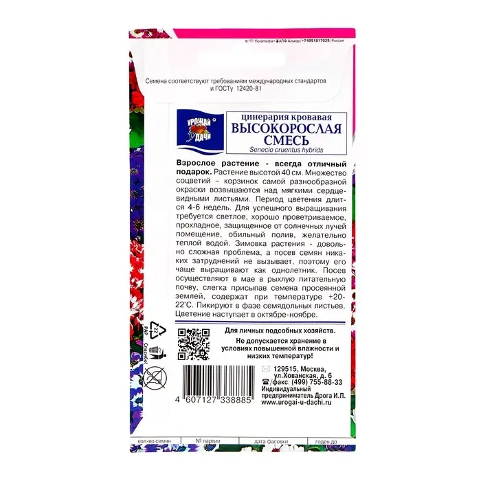 Семена Цинерария приморская "Андромеда", ц/п, 0,05 г