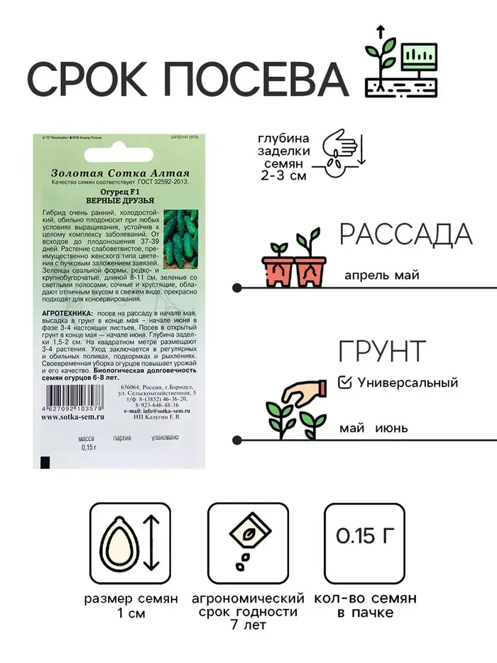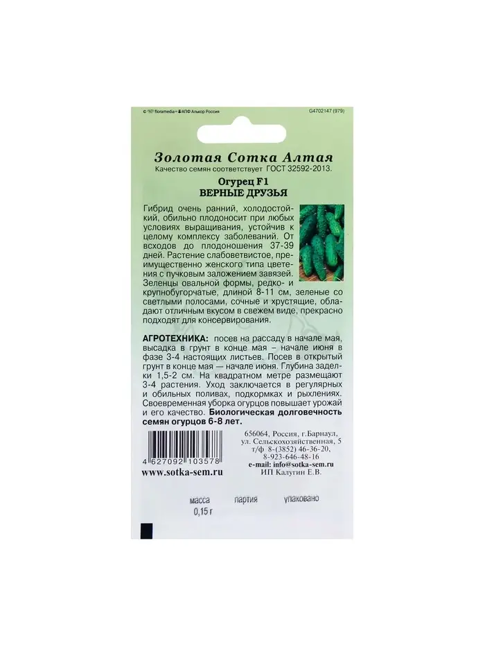 Семена Огурец "Верные друзья F1", раннеспелый, 0,15 г