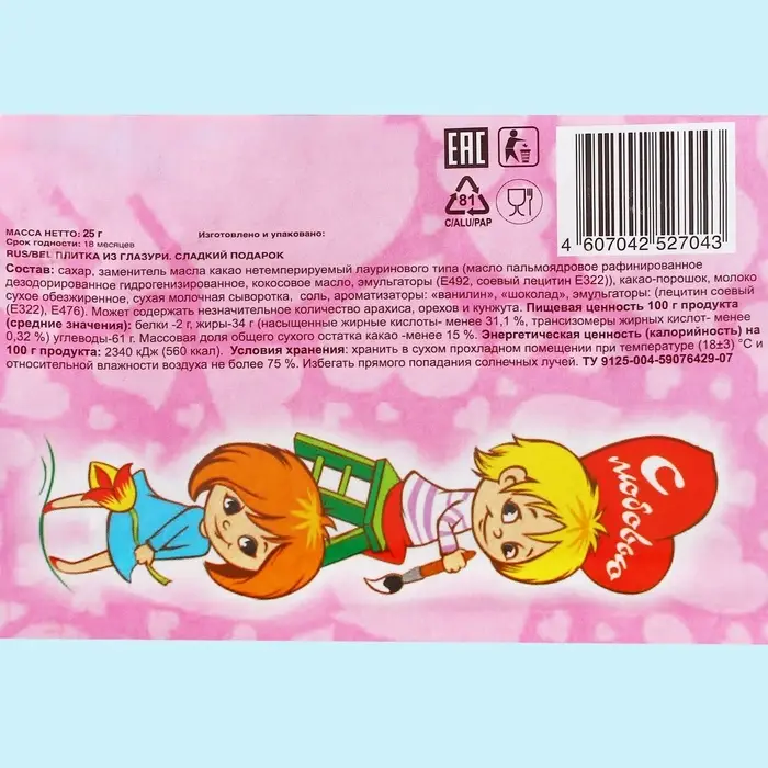 Шоколад молочный «От розовых соплей»: 27 г.