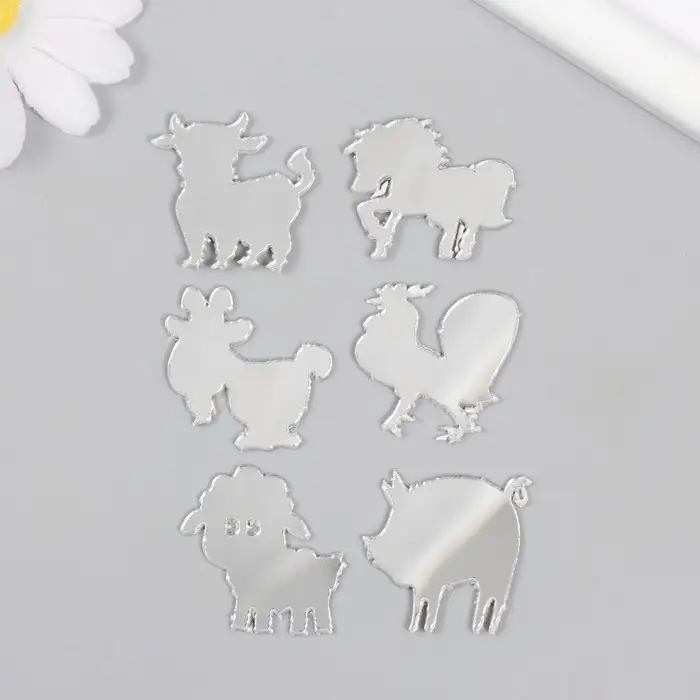 Декор для творчества пластик зеркальный "Животные на ферме" набор 6 шт