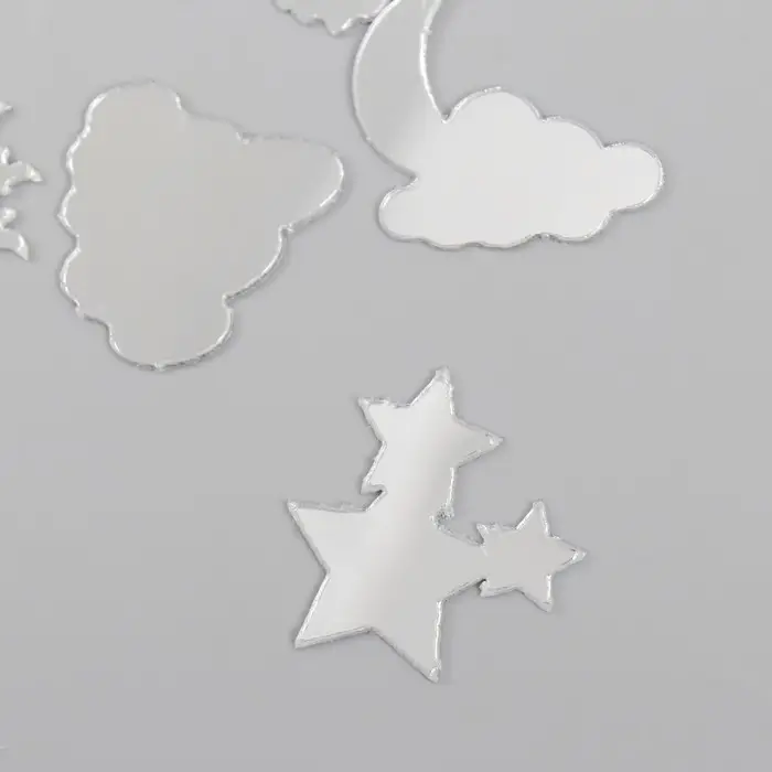 Декор для творчества пластик зеркальный "Солнце, звёзды и облака" набор 6 шт