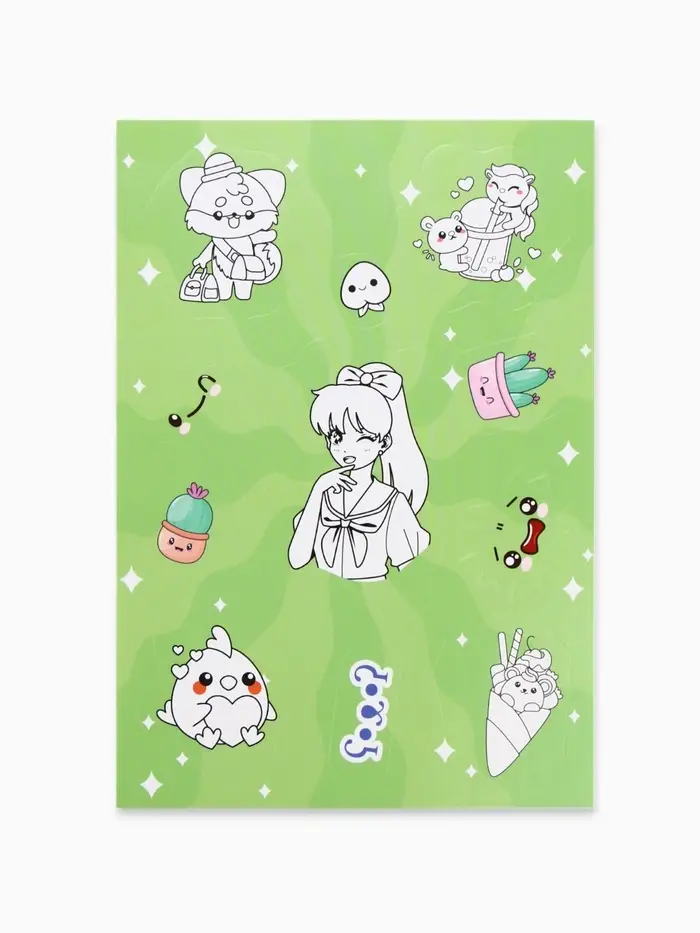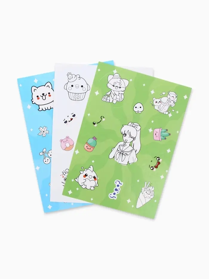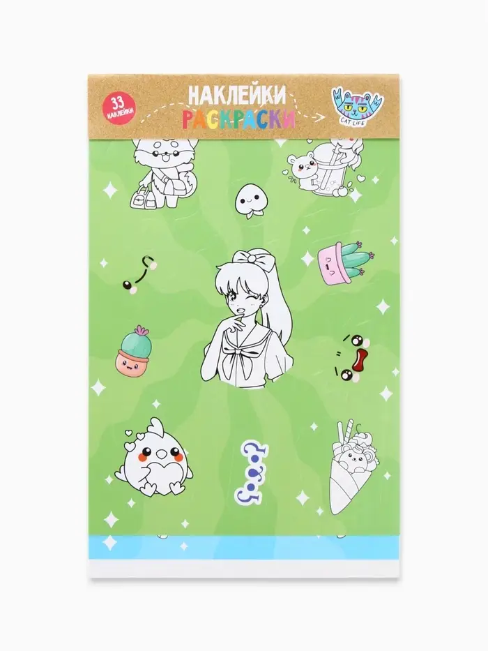 Наклейки детские, раскраска, 3 листа, А5 «Аниме»