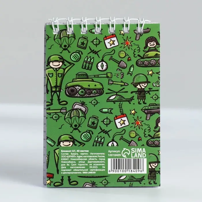 Блокнот А7, 40 листов в мягкой обложке, на гребне «С 23 февраля. Паттерн»