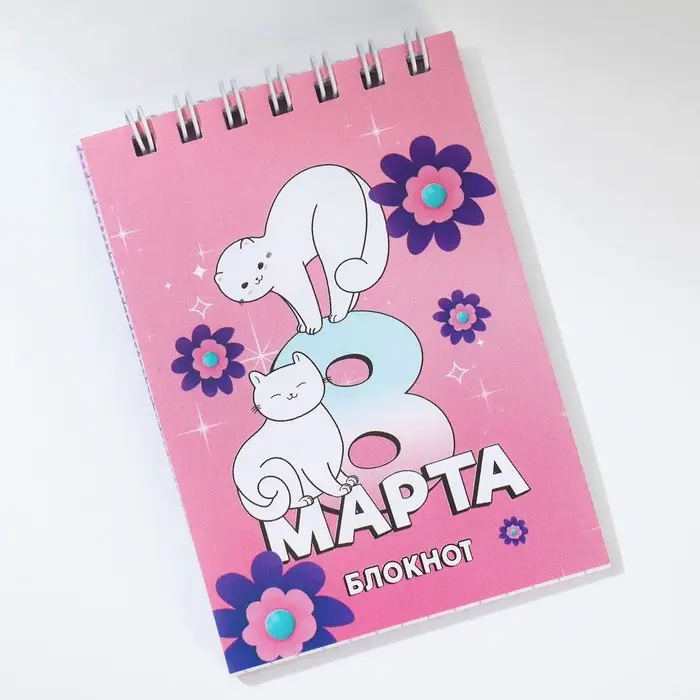 Блокноты в мягкой обложке А7, 40 л на гребне «С 8 Марта»