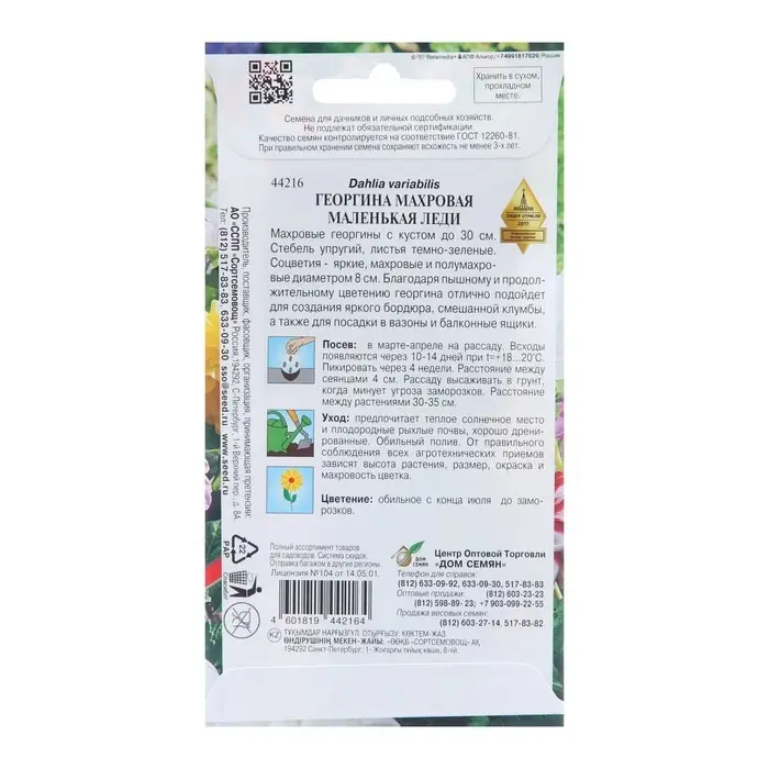 Семена цветов Георгина "Махровая" смесь, О, 0,2 г