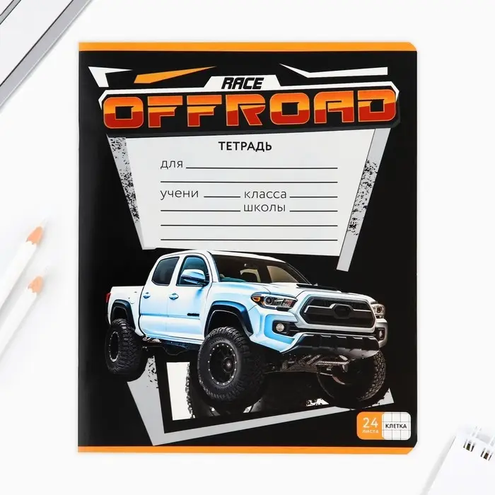 Тетрадь в клетку 24 листа А5, на скрепке «Гонщику», обложка мелованный картон, 5 видов МИКС