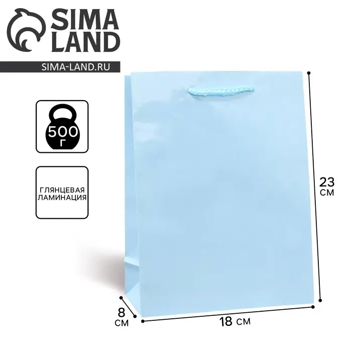 Пакет подарочный ламинированный, упаковка, «Голубой», MS 18 х 23 х 8 см