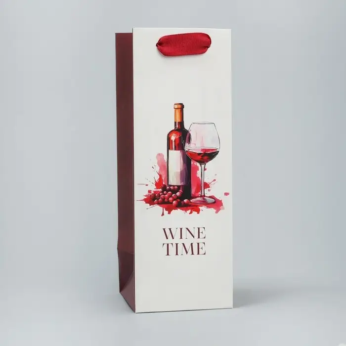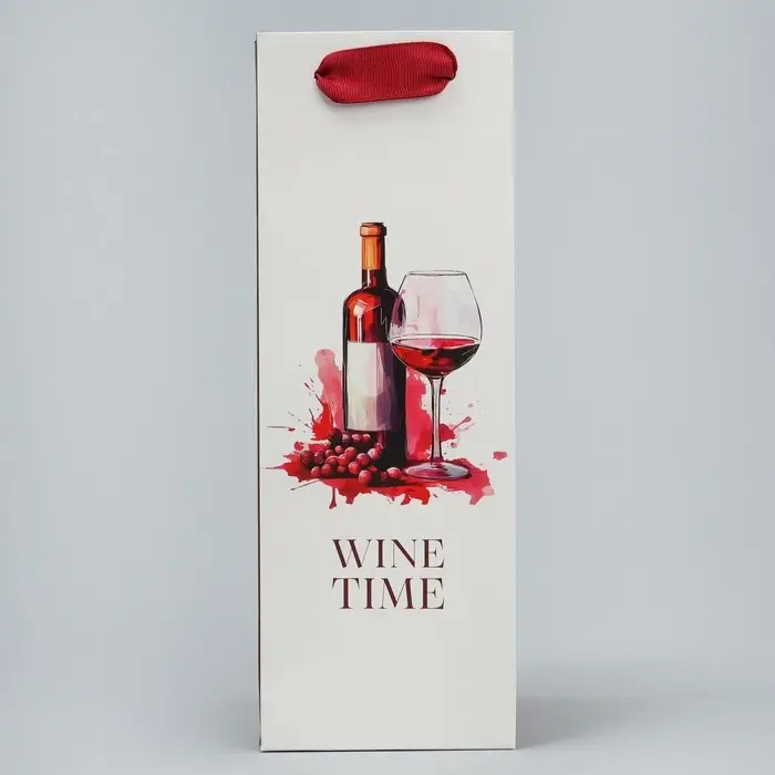 Пакет подарочный под бутылку, упаковка, «Время винишка», 9 х 25 х 8.5 см