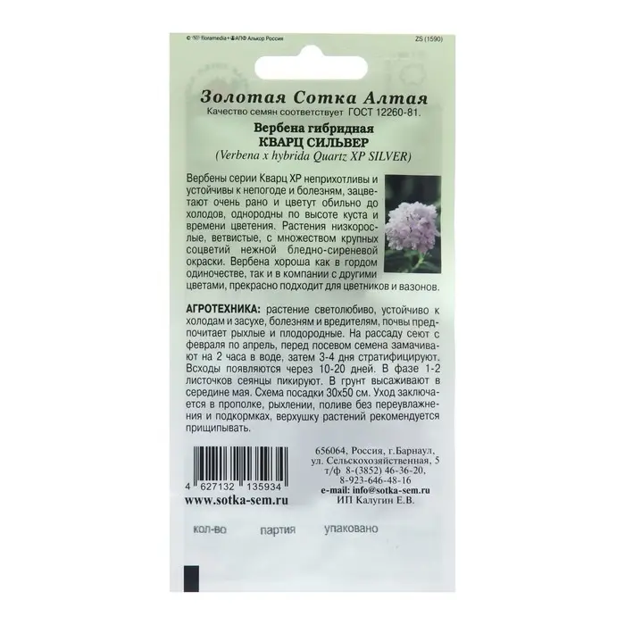Семена цветов Вербена "Кварц Сильвер", 5 шт