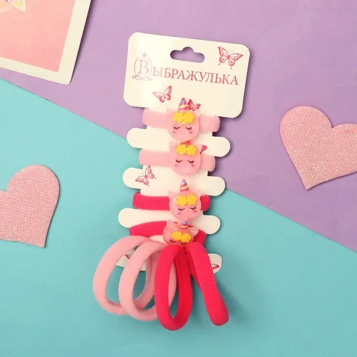 Резинка для волос "Амелия" (набор 8 шт) единорожек с цветочками, 4 см, розовый