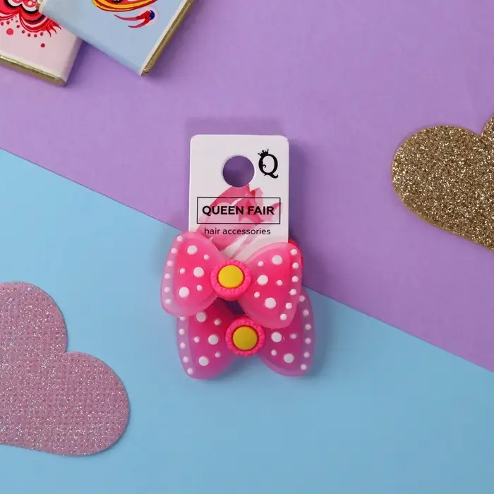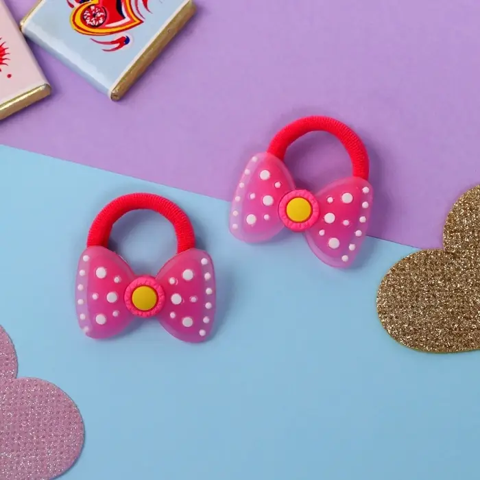 Резинки для волос «Крошка», набор 2 шт., бантик, 3 см, розовые