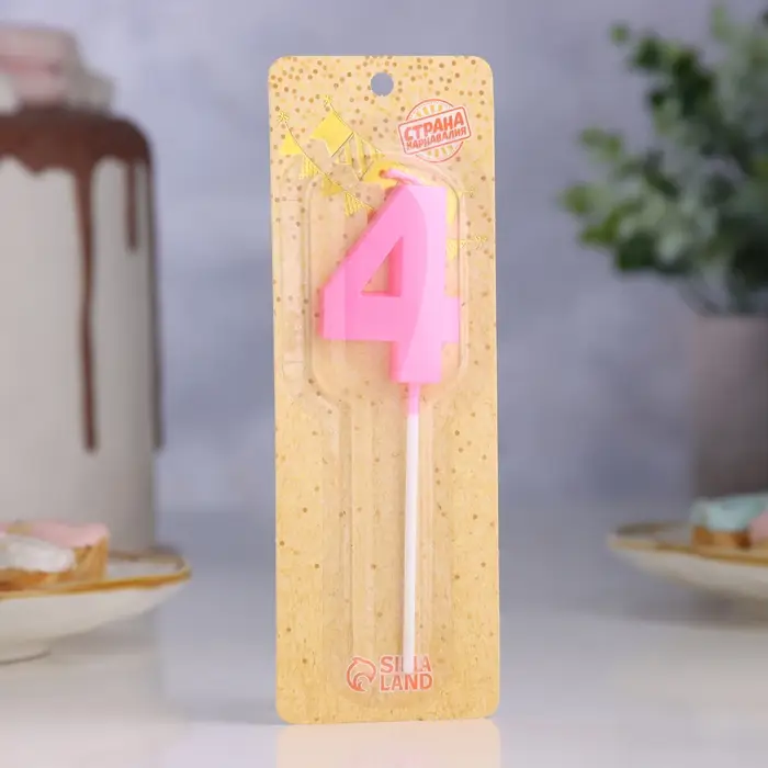 Свеча в торт на шпажке «Грань», цифра 4, 5 см, розовая