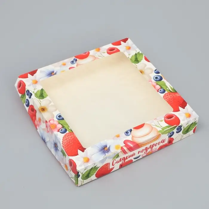 Кондитерская упаковка, коробка с ламинацией «Сладкий подарочек», 20 х 20 х 4 см