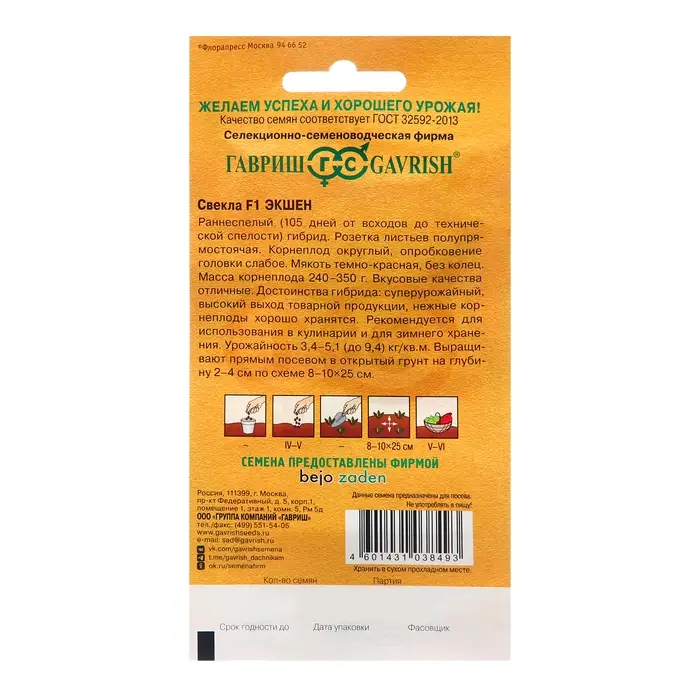 Семена Свекла "Экшен", ц/п, F1, 1 г