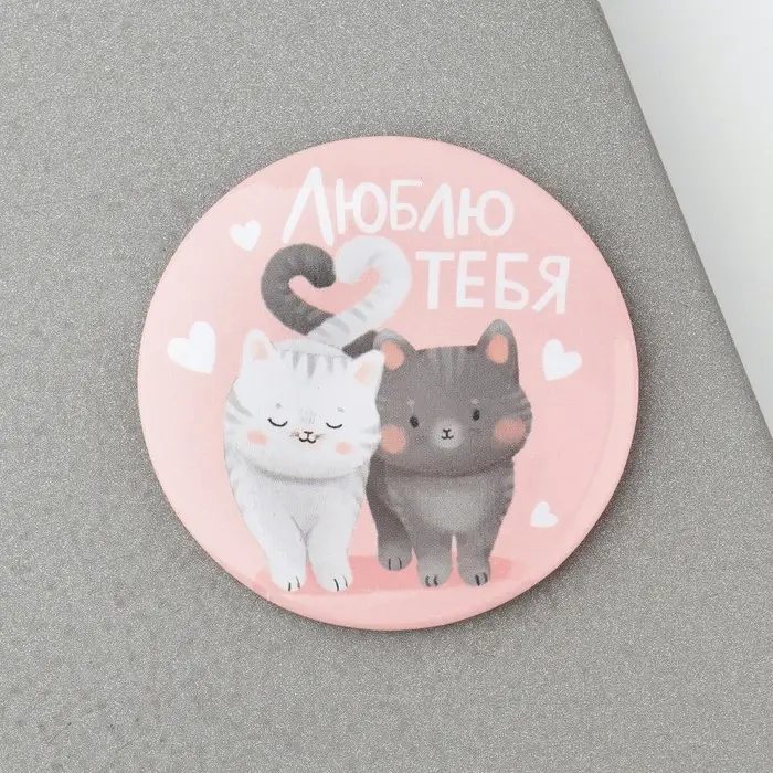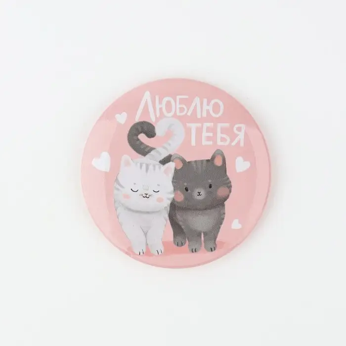 Магнит закатной, сувенир «Люблю тебя», d=5 см.