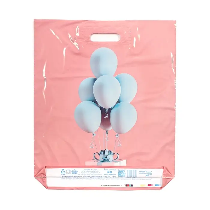 Пакет полиэтиленовый с вырубной ручкой, прочный с оригинальным рисунком.