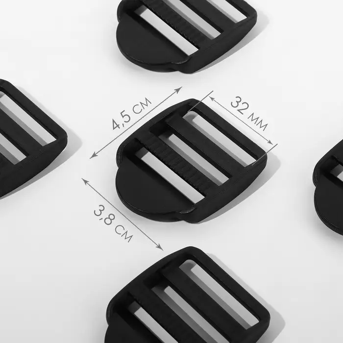 Пряжка регулирующая, трёхщелевая, вн. ширина=32 мм, s=3 мм, 10 шт., чёрная