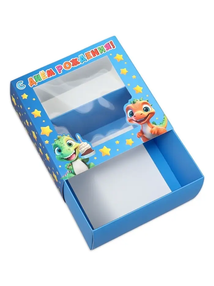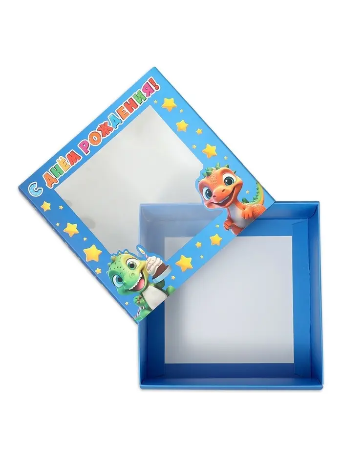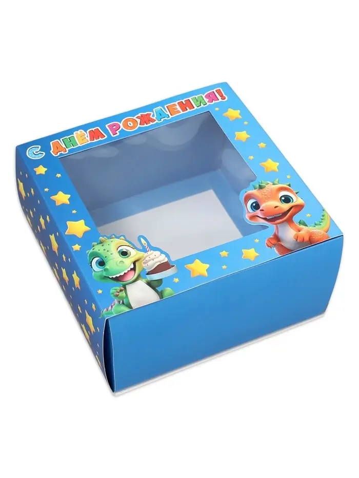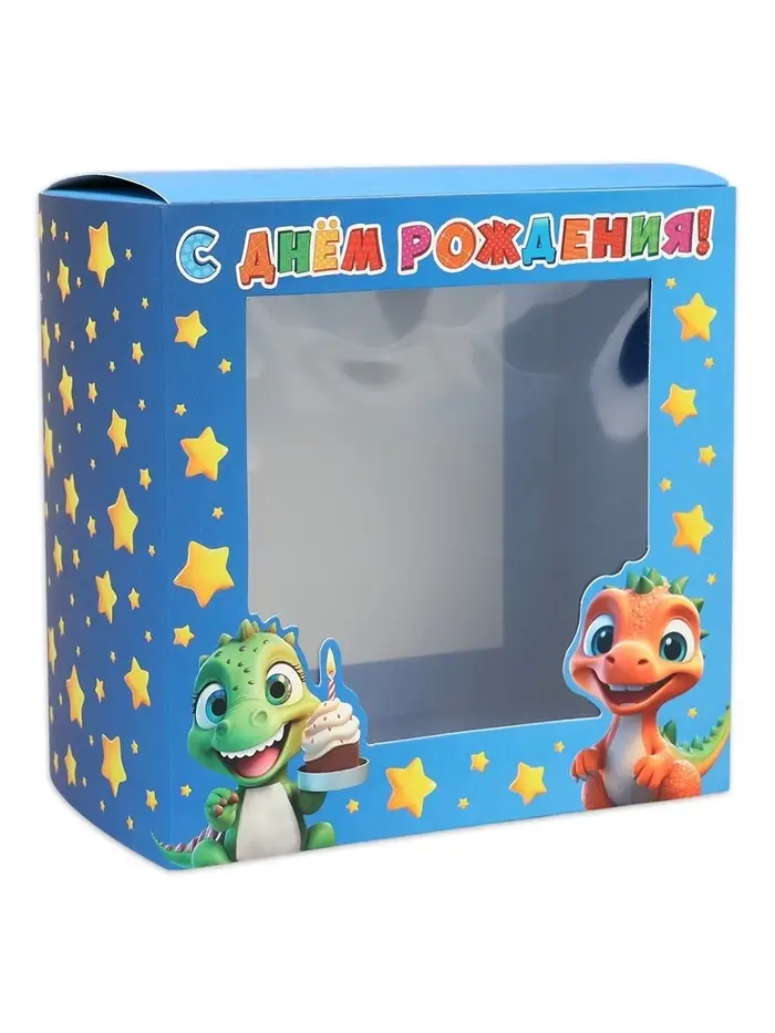 Коробка подарочная складная с пластиковым окном, упаковка, «Милые динозаврики», 14 х 14 х 8 см