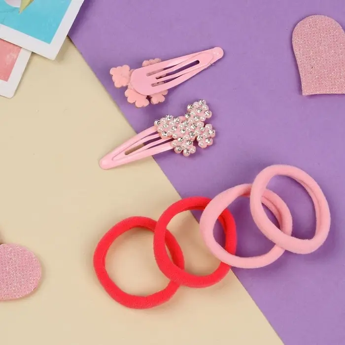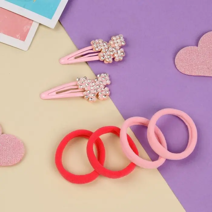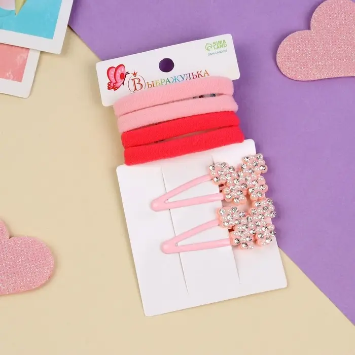 Набор для волос "Лили" (4 резинки 4 см, 2 невидимки 5 см) бабочки, розовый