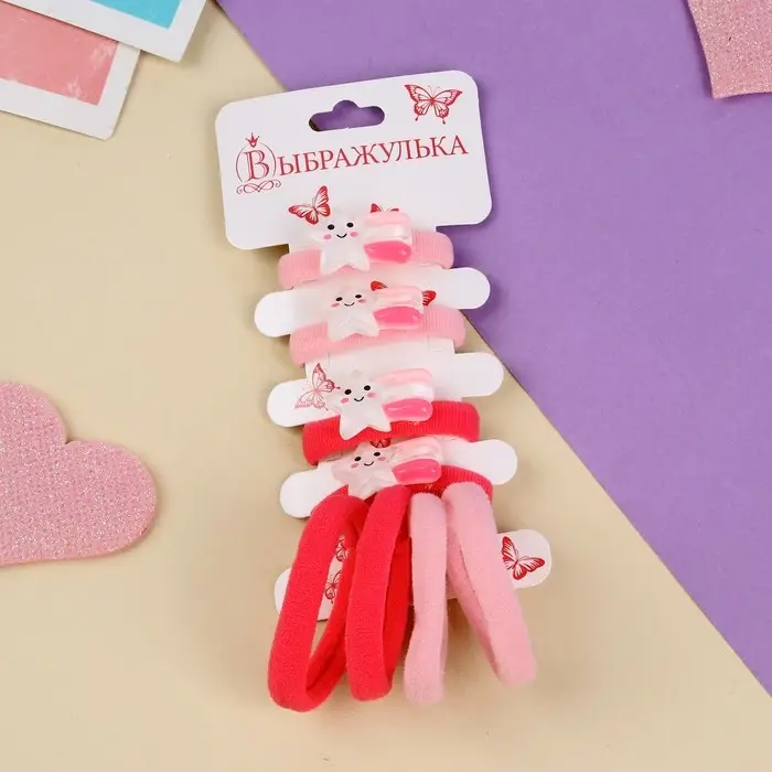 Резинка для волос "Амелия" (набор 8 шт) звёздочка, 4 см, розовый