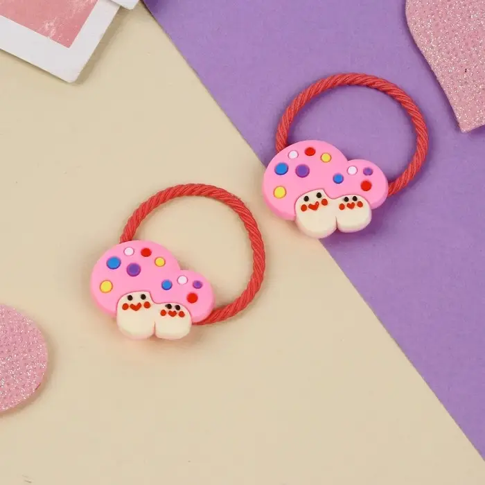 Резинка для волос "Крошка" (набор 2 шт) грибочки,3 см ,розовый