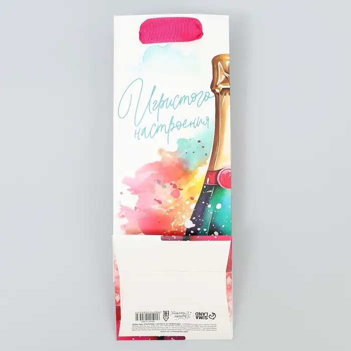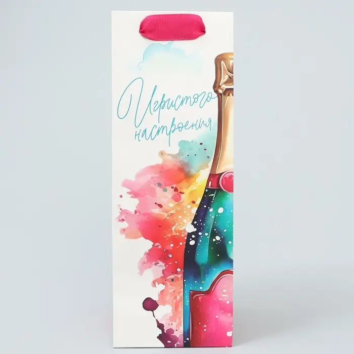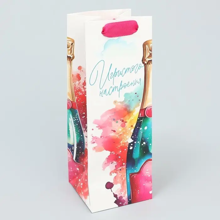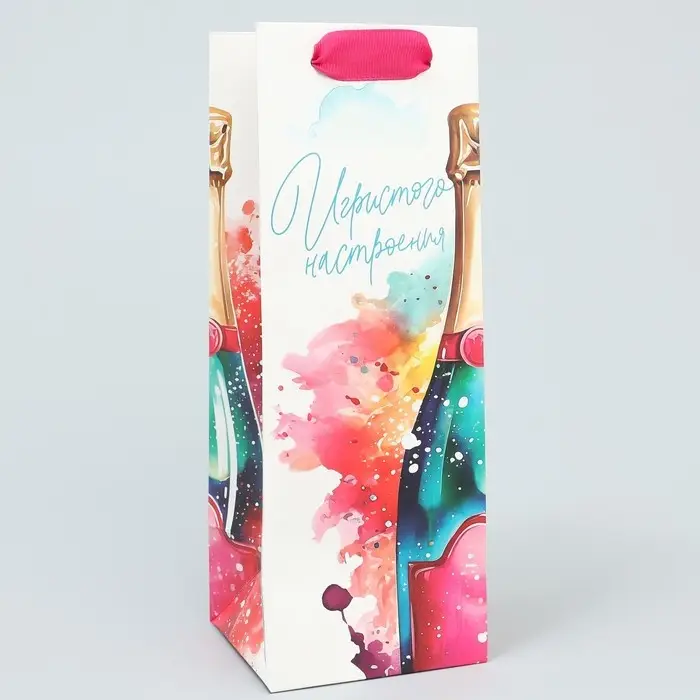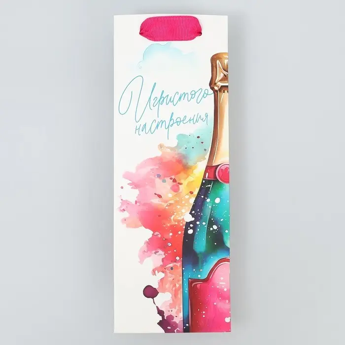 Пакет подарочный под бутылку, упаковка, «Игристое настроение», 9 х 25 х 8.5 см