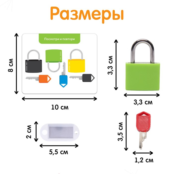 В комплекте 6 замочков, 12 ярлычков и 10 заданий.