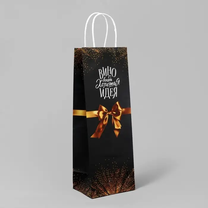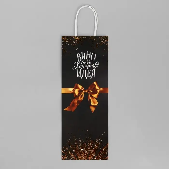 Пакет подарочный под бутылку, упаковка, «Бант», белый крафт, 13 х 36 х 10 см