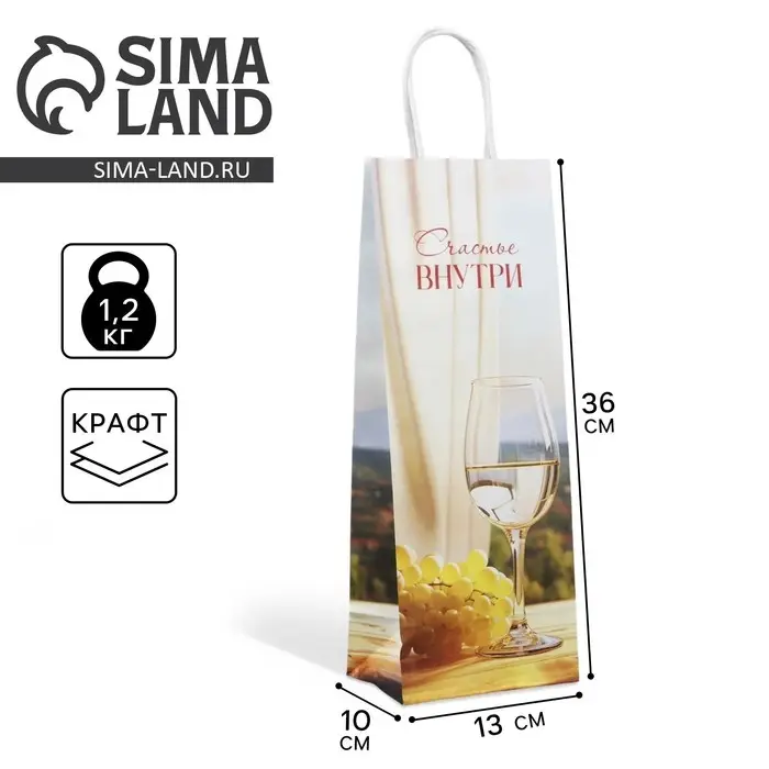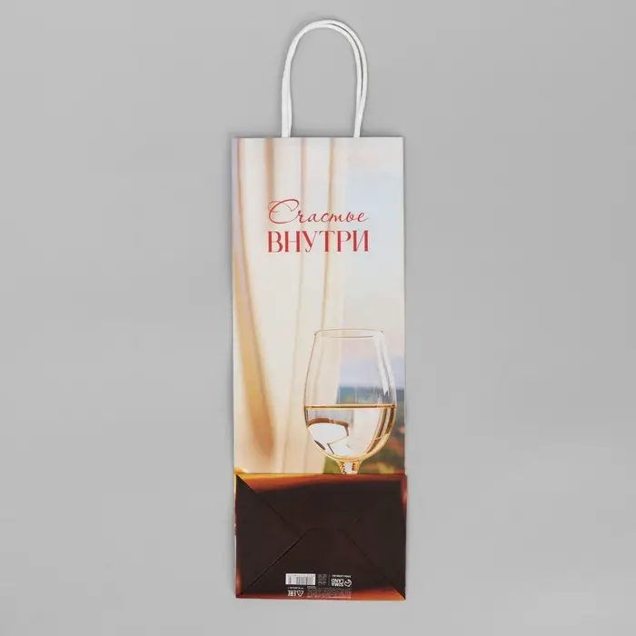 Пакет подарочный под бутылку, упаковка, «Счастье внутри», белый крафт, 13 х 36 х 10 см
