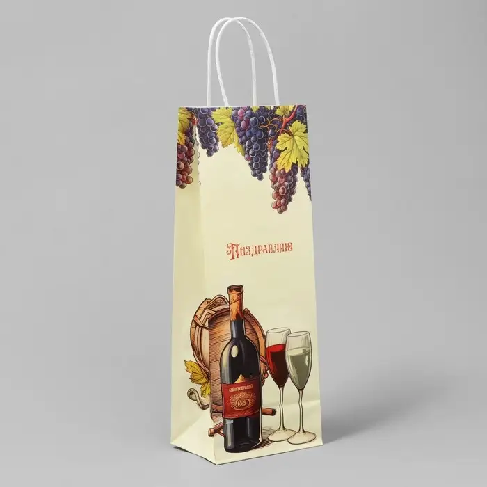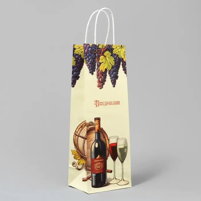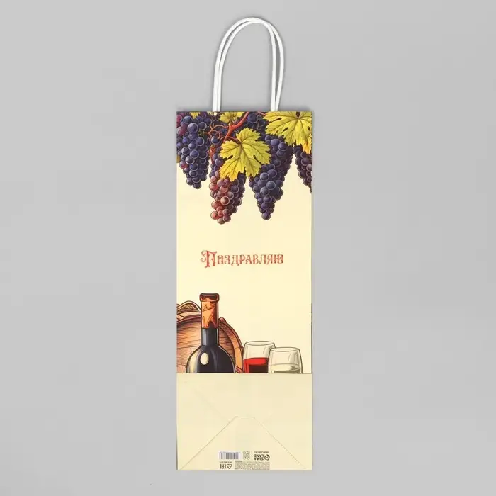 Пакет подарочный под бутылку, упаковка, «Поздравляю», белый крафт, 13 х 36 х 10 см