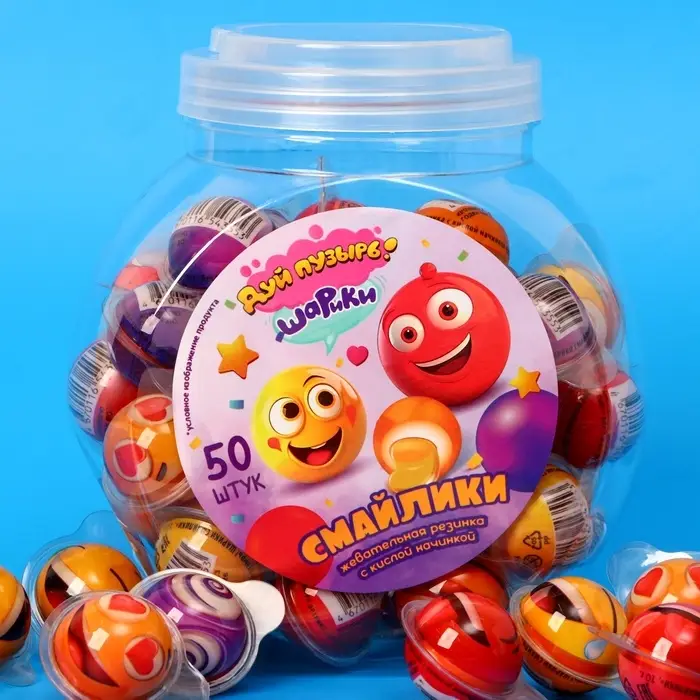 Жевательная резинка с кислой начинкой «Дуй пузырь! ШАРИКИ СМАЙЛИКИ», 10 г