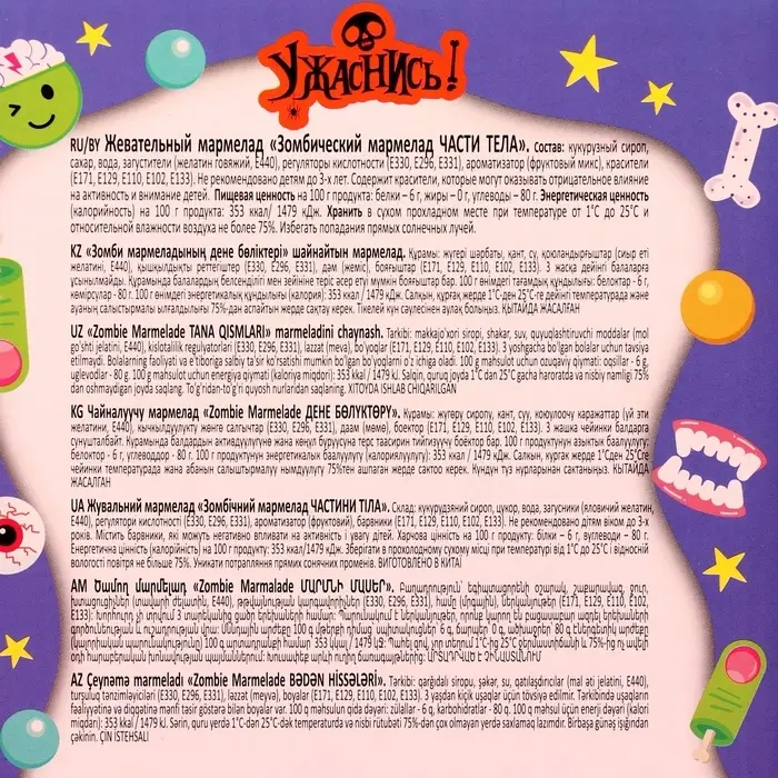 Жевательный мармелад «Зомбический мармелад ЧАСТИ ТЕЛА», 9 г