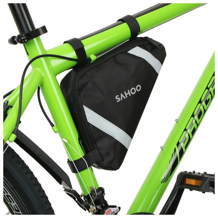 Сумка подходит для всех типов велосипедов, легко крепится и снимается с помощью липучек. Изготовлена из водостойкого полиэстера. Подкладка изготовлена из вспененного полиэтилена.