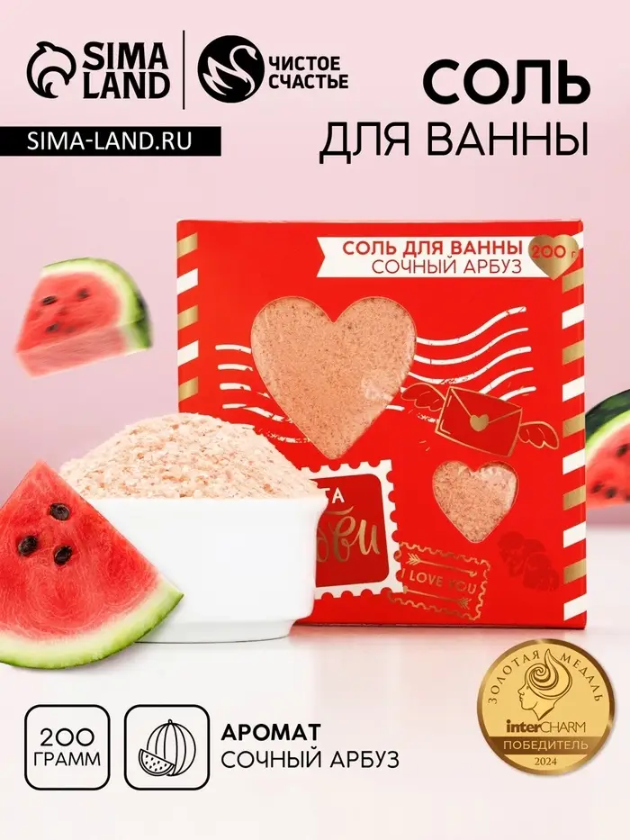 Соль для ванны «Почта любви», 200 г, аромат сочного арбуза, Чистое счастье