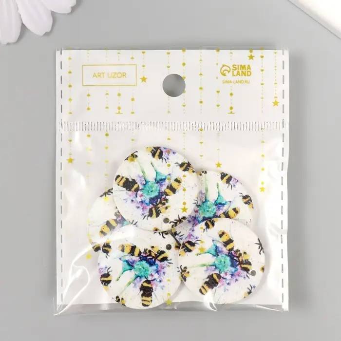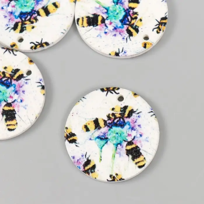 Декор для творчества дерево "Круг. Пчёлки на цветах" d=3 см