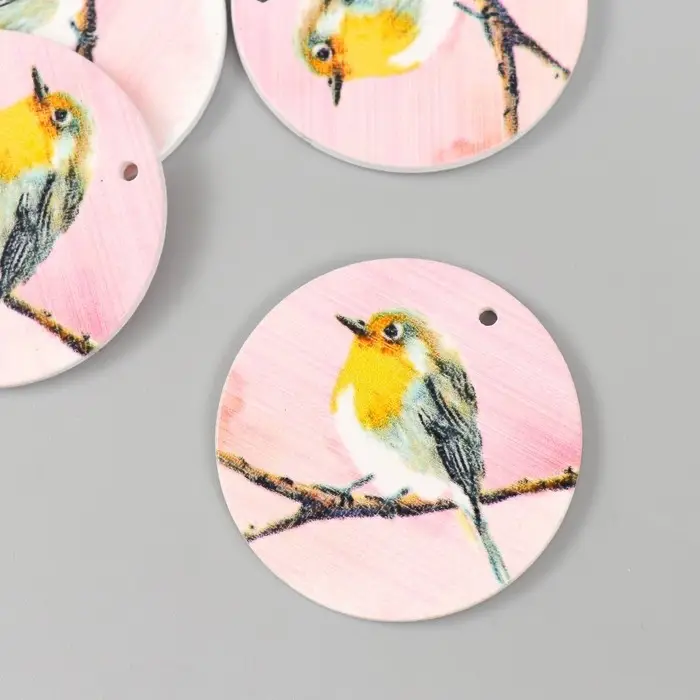 Декор для творчества дерево "Круг. Птичка на ветке" d=4 см