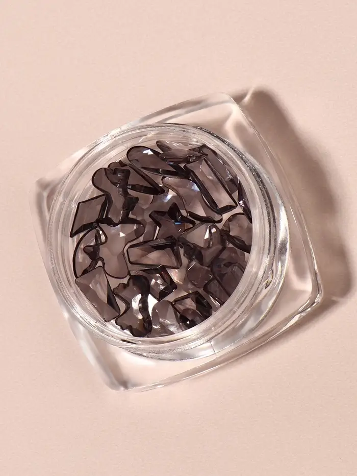 Эти уникальные элементы сочетают в себе изысканный полупрозрачный и чёрный цвета, создавая впечатляющий 3D-эффект. Благодаря многообразию форм и объёмной текстуре, они добавят вашему дизайну ногтей глубину и оригинальность. Такой декор станет идеальным решением для тех, кто ищет нестандартные и стильные решения для маникюра.