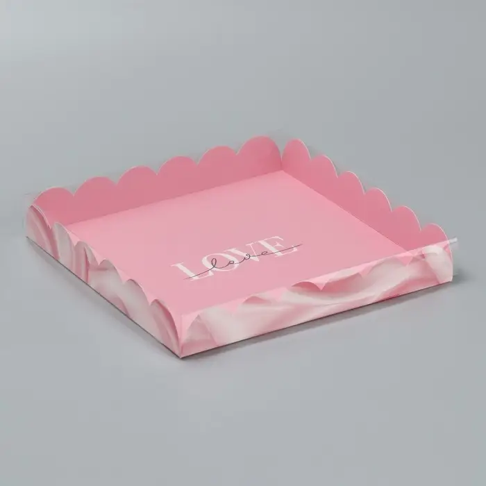 Коробка для печенья, кондитерская упаковка с пластиковой крышкой, «Шёлковая любовь», 21 х 21 х 3 см