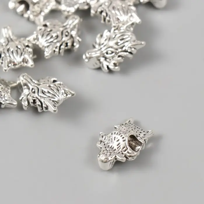 Бусина для творчества металл "Волк" серебро 1,3х1,8 см