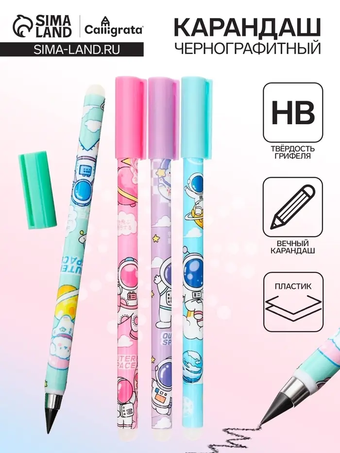 Карандаш чернографитный НВ вечный, Calligrata, МИКС